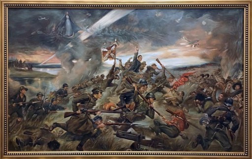 Na znanym obrazie jerzego kossaka cud nad wisłą, ponad żołnierzami polskiego wojska broniącego przyczółków warszawy przed bolszewicką nawałą, jaśnieje postać matki boskiej.